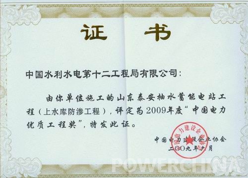 桐柏抽水蓄能电站工程获中国电力优质工程