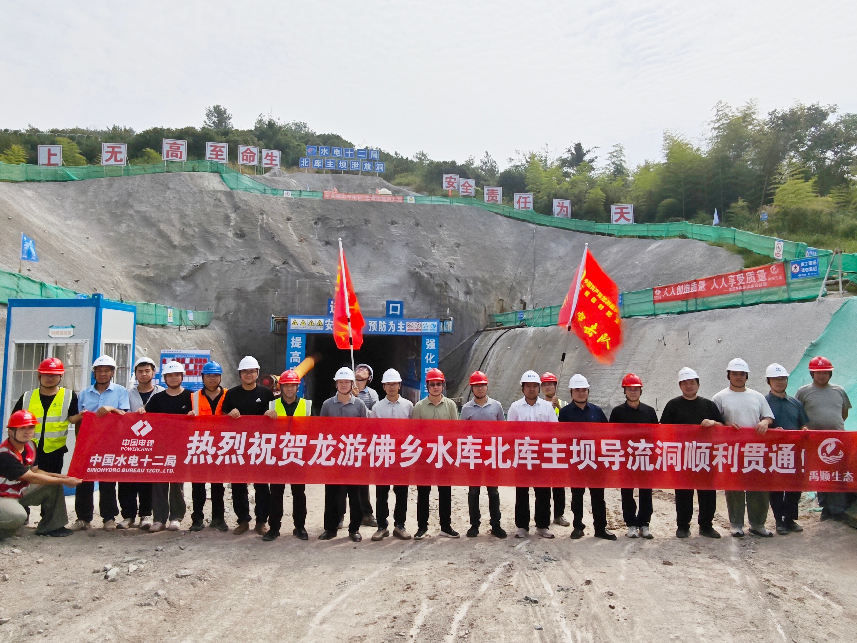 9月30日,龙游县佛乡水库工程北库导流洞顺利实现全线贯通。龙游县电视台对此进行了报道。 北库主坝泄洪放空洞全长189.5米,采用单向开挖方式施工。该隧洞地质条件复杂,IV、V类围岩段长达177米,施工采用了上下分层、分块开挖的方案;其余12.5米的III类围岩段则采用全断面开挖。隧洞进出口前10米为矩形渐变段,其余断面采用城门洞型设计,根据不同围岩类别和支护方式,开挖尺寸在5.8米×5.4米至6.38米×5.89米之间实现了精确控制。 自2025年5月正式开工以来,项目部克服了前期施工条件的不利因素,及时调整施工组织,积极与业主、监理、设计单位沟通协调,有序组织人员设备进场。在确保安全的前提下,通过加大资源投入、优化施工方案等方式,最终圆满完成了贯通任务,赢得了各方充分肯定。 佛乡水库是浙江省“千项万亿”重大水利工程,此次贯通标志着佛乡水库工程建设取得了首个阶段性胜利,为后续混凝土洞身衬砌、大坝填筑乃至整个项目工期的顺利推进奠定了坚实基础。佛乡水库作为一项建成后将惠及超过13万人口,改善区域水资源配置的民生工程,其阶段性进展也被赋予了特殊的意义。 接下来,项目部将以此为新起点,不断开拓进取,持续提升安全质量管理水平,全力推进后续施工作业,确保高标准完成后续节点目标,为龙游县经济社会高质量发展贡献更大力量。
