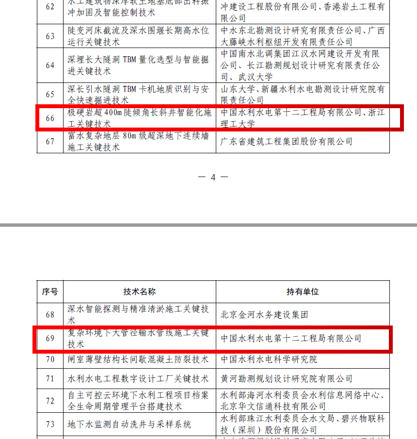 近日,国家水利部科技推广中心正式发布《2025年度水利先进实用技术重点推广指导目录》。在“实施国家水网重大工程”类目中,公司研发的“极硬岩超400m陡倾角长斜井智能化施工关键技术”和“复杂环境下大管径输水管线施工关键技术”两项成果成功入选,标志着公司科技成果首次获此国家级权威认可,充分体现了企业在水利工程前沿技术领域的创新实力与示范价值。 《极硬岩超400m陡倾角长斜井智能化施工关键技术》面向水利水电工程中的斜井与竖井施工,系统构建了以智能钻进、精准纠偏与安全提升为核心的成套技术体系。该技术通过有限元分析揭示岩体特性与钻进参数的作用机理,研发随钻智能感知与定向钻进辅助决策系统,实现先导孔全过程智能控制与精准钻进,导孔偏斜率可低至0.23‰;通过构建极硬岩与钻具耦合力学模型,研制新型镶齿盘形滚刀及刀盘姿态矫正装置,有效防控卡钻风险,实现高效破岩与智能钻进,使400米长斜井在1.5个月内完成反扩成型;同时构建基于物联感知与数智分析的智能提升控制系统,全面保障施工安全。该技术广泛适用于水利、水电工程中斜井、竖井的掘进开挖与混凝土施工等场景。 《复杂环境下大管径输水管线施工关键技术》聚焦于穿越铁路、公路、河流、乡镇及富水区等复杂环境下的输水管道建设难题,形成以整体沉管、精准顶推与机械化安装为特色的综合施工方案。该技术提出“单根多型大径长跨沉管一次下沉”方法,集成“精准测控、水下平槽、顺流组拼、空管横移、逐段锚定、分序下沉”等工序,显著降低作业风险并保障沉管质量;创新采用“轨道扁担梁加固+顶框架涵”顶推加固方法,解决铁路正常运行条件下受限空间内大直径管道运输与安装难题;配套研制大吨位大直径吊运一体化门式起重装置,实现超长深基槽管线机械化高效安装;同时发明管道接口缝砂浆“包带法”施工技术,研发管周级配碎石排水与跟进盖重工艺,进一步提升工程可靠性与长期稳定性。该技术适用于市政、水利等领域中穿越复杂环境的大型输水管线工程,具有显著的社会、经济与生态效益。 此次入选,不仅标志着公司技术成果在先进性、实用性与推广价值方面获得国家级权威认可,也为服务国家水网重大工程建设、推动行业技术升级注入了强劲动力。下一步,公司将持续加强科技研发与成果转化,为我国现代水网体系建设与水利事业高质量发展贡献更多力量。