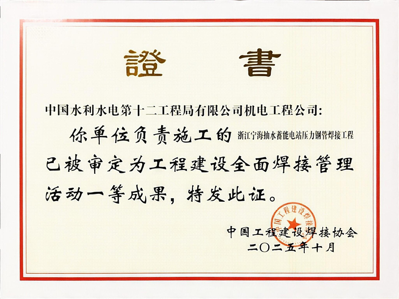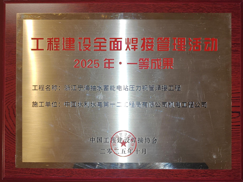 近日,中国工程建设焊接协会在北京召开2025年度工程建设全面焊接质量管理活动成果发布暨经验交流会,由水电十二局承建的浙江宁海抽水蓄能电站压力钢管焊接工程荣获“工程建设全面焊接管理活动2025年度一等成果”。 本工程压力钢管共1.35万吨,其中600兆帕、800兆帕高强度钢压力钢管8374吨。为确保焊接质量,水电十二局机电工程公司在建设过程中始终坚持以高标准、高质量为导向,从焊接工艺评定、焊接工艺选择、焊工技能管控、洞内焊接机器人应用、焊接质量检查等焊接重点出发,逐一破解工期紧、焊接量大、高强钢厚板焊接等多项难题。施工过程中,项目团队始终秉持全面焊接过程质量管理理念,确保每条焊缝均达到国家及行业标准。 优秀焊接工程奖是我国工程建设焊接最高质量荣誉,每年度评审一次。该奖项由中国工程建设焊接协会按照“优中选优”和公开公正公平原则,经过资料检查、初审、复审、拟定评价、成果答辩、审定评价、公示等流程进行评定。