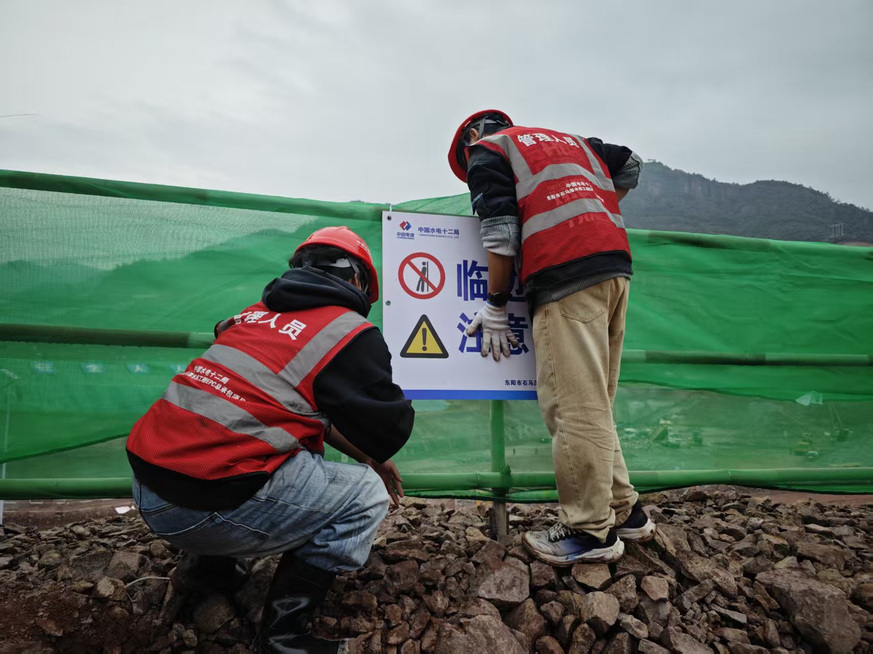 近日,为全面迎接省水利厅与国家安委办联合开展的专项检查工作,石马潭项目部组织“党员先锋队”和“青年突击队”奔赴大坝施工现场,开展了一场以边坡挂网防护与现场旗帜插设为主要内容的主题活动。 项目党支部与团支部联合发出动员令,号召广大青年员工主动担当,积极作为。党员和各部门青年技术骨干、现场管理人员、新入职员工纷纷踊跃报名,迅速组建“党员先锋队”和“青年突击队”。两支队伍协同作战,形成了攻坚克难的强大合力。 大坝施工现场,边坡陡峭,作业面复杂。活动当天,恰逢阴雨天气,寒风裹挟着雨丝,给户外作业带来了严峻挑战。边坡防护挂网组队员身系安全绳,在陡坡上谨慎移动。他们三人一组,默契配合,一人负责展铺绿色防护网,另两人则使用专用工具将防护网固定在边坡围栏上。与此同时,现场标识插设组的队员们肩扛一捆捆印有“安全施工”“绿色环保”等字样的彩旗,沿着大坝施工区的关键路径和观景平台进行布设。原本略显杂乱的边坡被整齐的绿网覆盖,施工现场在旗帜的装点下显得秩序井然、气势恢宏。 此次活动,不仅是一次卓有成效的环境整治,更是一堂生动的实践党课和团课。青年员工们在风雨中锤炼了意志,在协作中增进了情谊,在攻坚中提升了技能。后续,石马潭项目部将持续搭建青年成长成才的平台,常态化发挥党员突击队、青年突击队的先锋作用,以更饱满的热情、更坚定的信念、更务实的作风,投入到项目后续的建设和各项急难险重任务中去,为石马潭项目的圆满建成贡献力量。