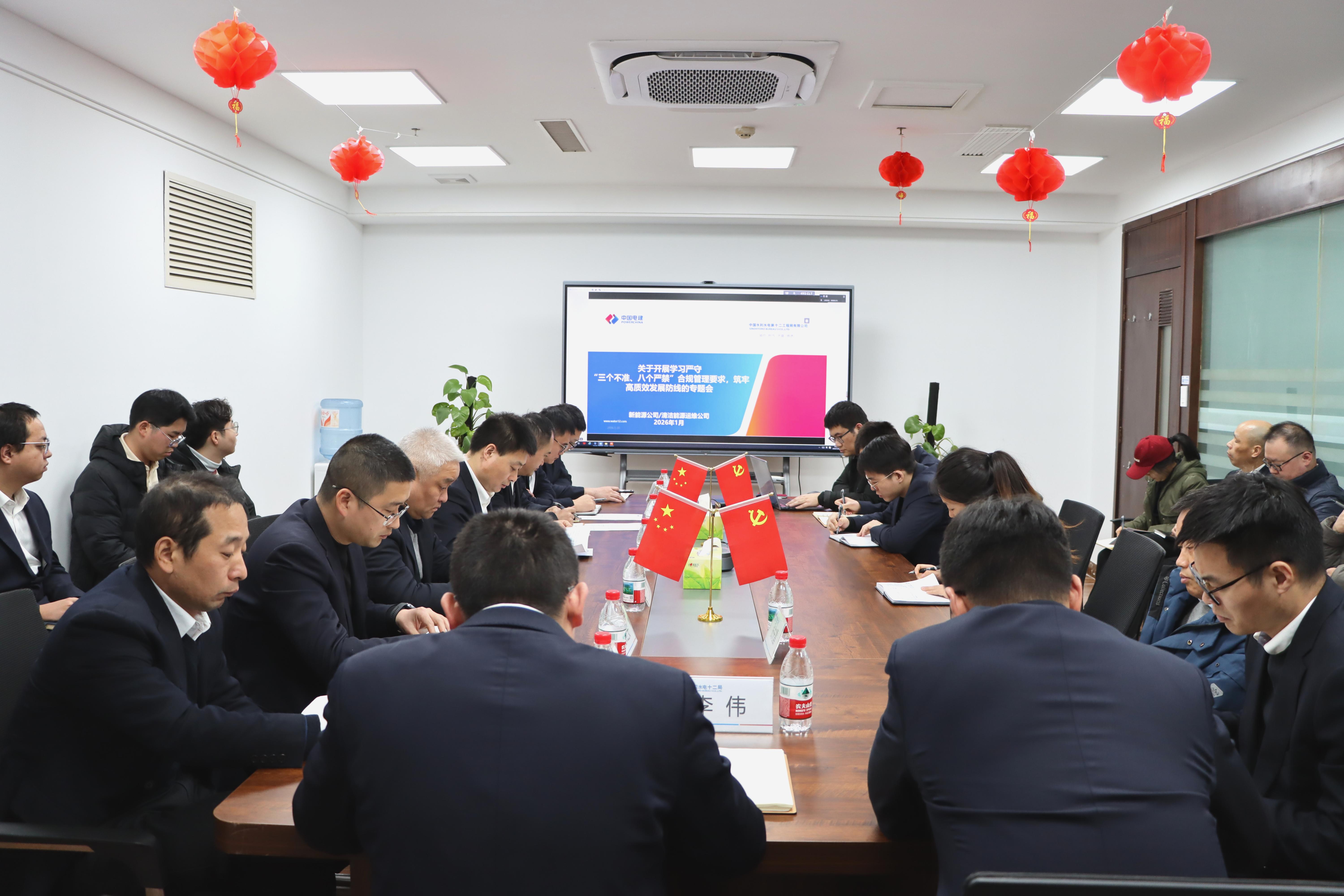 1月20日,新能源公司/清洁能源运维公司组织召开“严守‘三个不准、八个严禁’合规管理要求,筑牢高质效发展防线”专题会议,旨在进一步强化全员合规理念,筑牢合规管理根基,为公司高质量发展筑牢安全屏障、保驾护航。
